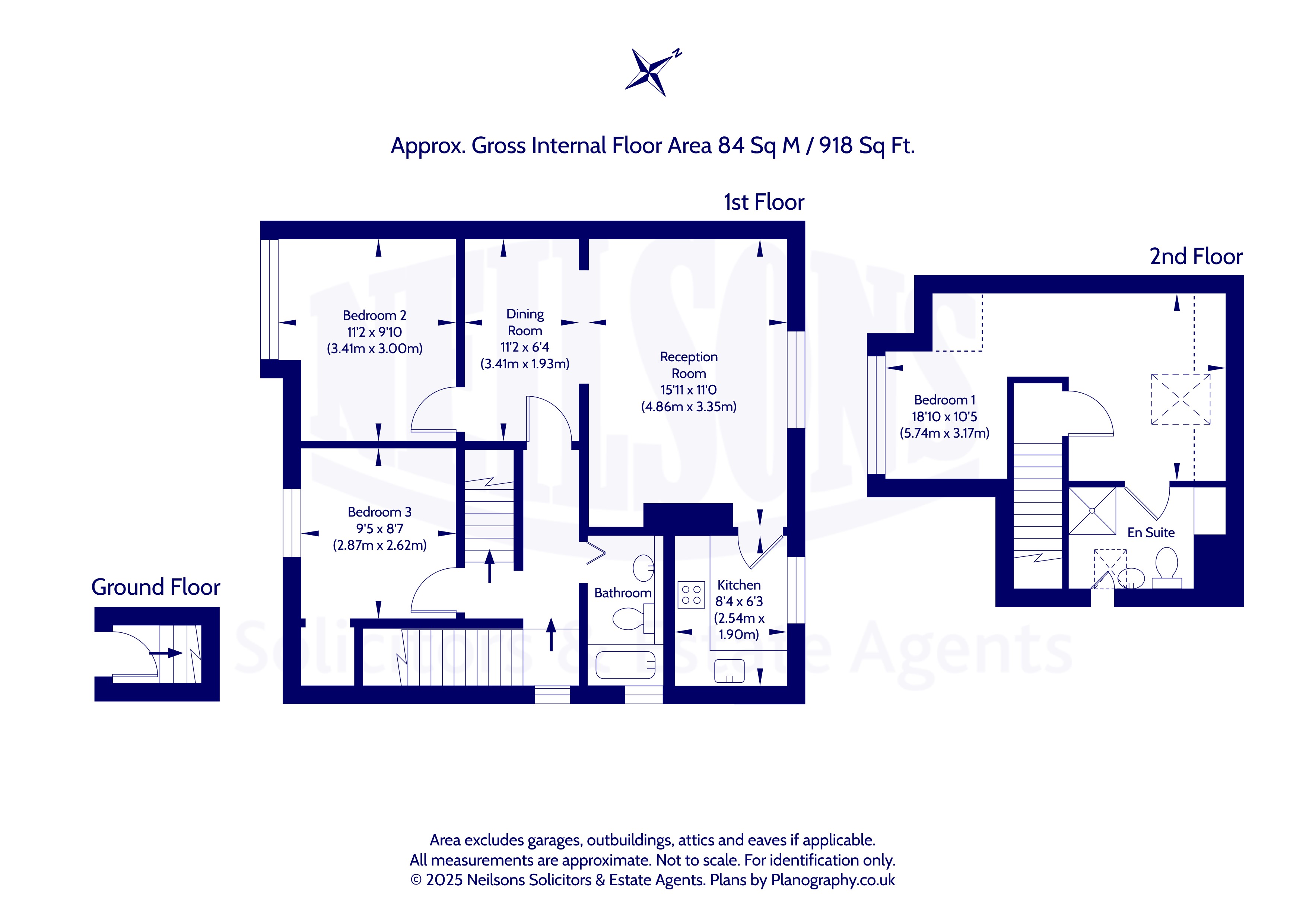 A welcoming private staircase leads to the main landing, setting the tone for the bright and airy interior. The generous lounge/diner enjoys a peaceful rear aspect, with ample room for a dining area and a gas fireplace creating a warm focal point. The attractive kitchen is fitted with a range of integrated and freestanding white goods, complemented by tiled flooring, partial tiling splash areas for easy upkeep, and neutral base and wall-mounted units. There are two well-proportioned double bedrooms on this level, both front-facing, with the third currently utilised as a home study and featuring a sizeable storage cupboard housing the boiler. The modern bathroom is fully tiled and includes a shower over bath and tiled flooring. Upstairs, the principal bedroom enjoys a dual-aspect outlook with a Velux window to the rear, offering excellent natural light and plenty of space for freestanding furniture and various layouts. The en-suite shower room features a corner cubicle, partial tiling, and useful eaves storage.
