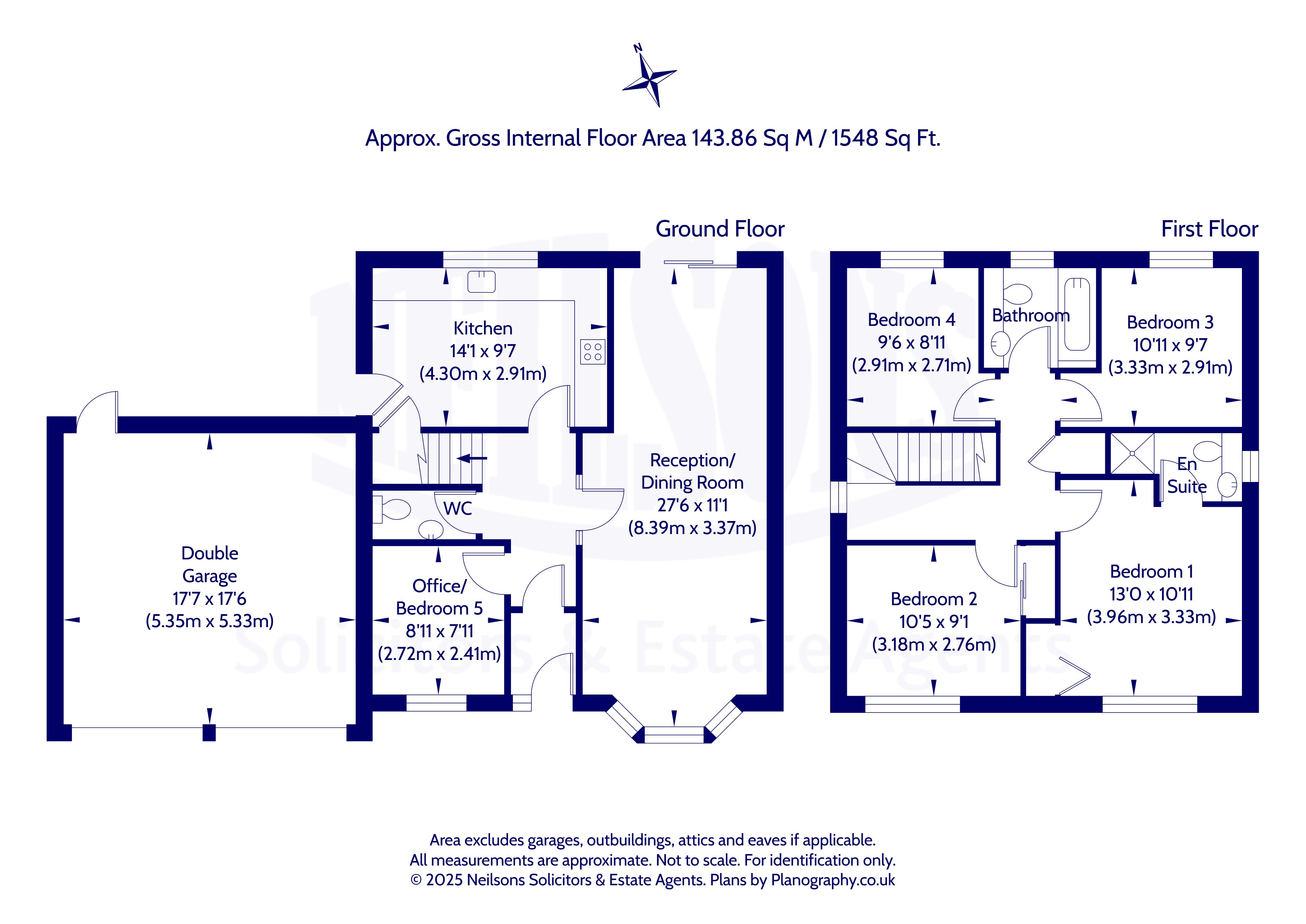 The property is offered to the market in excellent condition throughout, with well-maintained accommodation arranged over two floors. Enjoying good natural light and enjoying a modern interior, the accommodation comprises; entrance vestibule leading into a welcoming hallway with cloakroom. There is a bright dual aspect reception/dining room with French doors leading to the rear garden. The kitchen also provides access to the garden and is fitted with ample wall and base units with built-in hob/oven and hood with integrated fridge freezer and additional large storage cupboard. A fifth single bedroom / study completes the ground floor. Upstairs, the principal bedroom features mirrored fitted wardrobes, further overhead storage and an ensuite shower room. A further three double bedrooms, two with fitted storage, are served by a family bathroom with three piece suite with shower over the bath. Further benefits include gas central heating, double glazing, and useful storage provisions including an airing cupboard and attic.