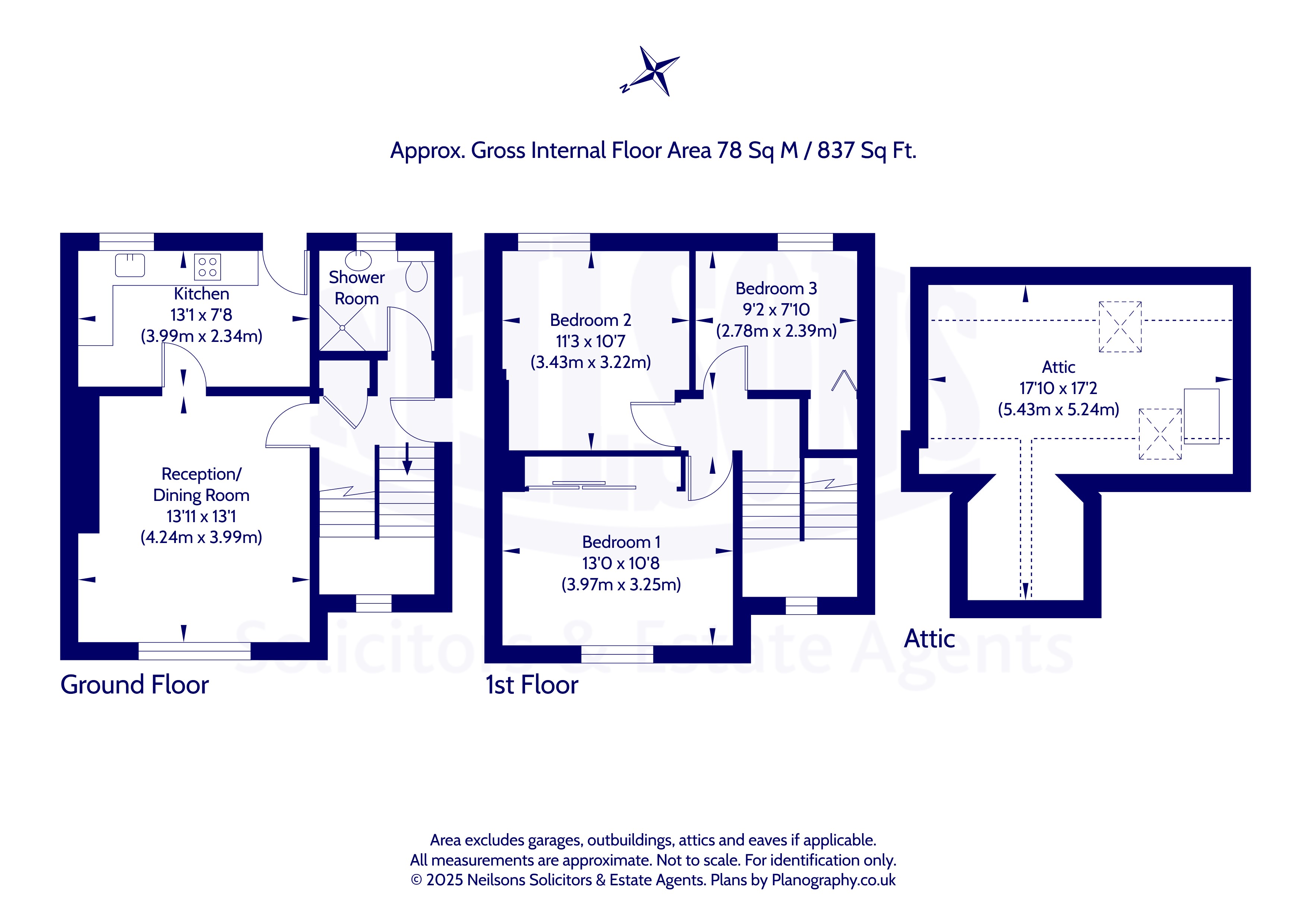 The well presented and stylish accommodation shall undoubtedly appeal to the professionals or families alike with many amenities, transport links and reputable schooling on hand providing an ideal base for everyone. Offered to the market in move-in condition, the accommodation comprises; entrance hallway with excellent storage. There is a front facing reception room with fitted desk and feature fireplace incorporating the gas fire. The modern kitchen/breakfast room is located off the lounge with pleasant open aspect over the garden with door providing direct access to the paved patio. It is fitted with ample wall and base units, complemented by contrasting worktops incorporating the built-in gas hob, electric oven and hood. Adequate space for table and chairs. Completing the downstairs accommodation is the stylish wet room with luxury Rainfall dual shower unit. The split level carpeted staircase leads to the first floor landing where all three good sized double bedrooms are located, with two of the three rooms benefiting from built-in wardrobes. In addition, there is a fully floored attic with two Velux windows, fitted with power, lighting and carpet providing excellent potential and great storage provisions. Further benefits include a HIVE gas central heating system with combi boiler and double glazed window units.