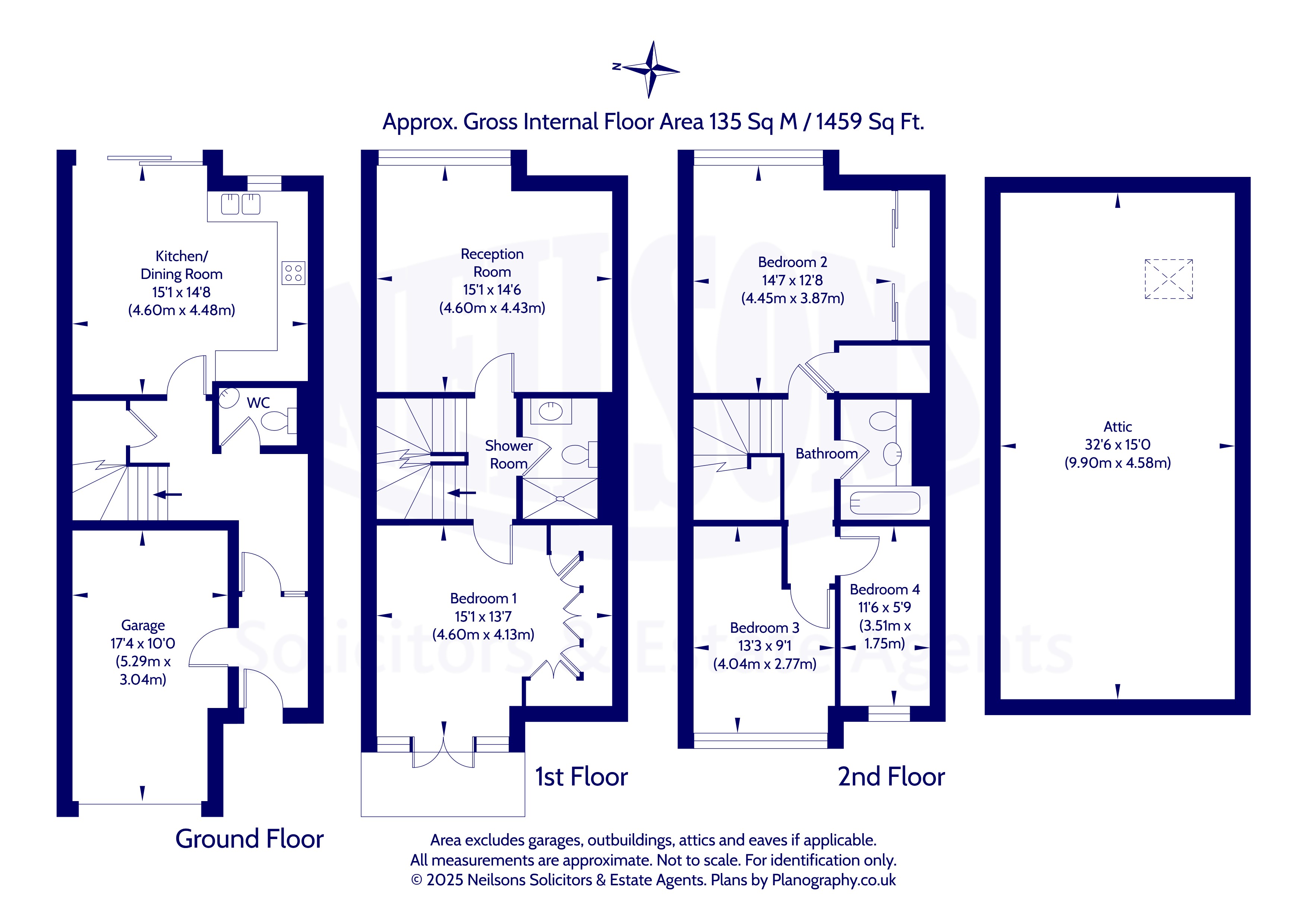 On the first floor is the generous, rear-facing reception room enjoying a delightful open outlook over the communal gardens. A modern shower room with white three-piece suite and the principal double bedroom are also located on this level, with the bedroom benefiting from built-in wardrobes and a private balcony, recently resurfaced with guarantee. The top floor houses two further double bedrooms, one fitted with built-in wardrobes and access to the floored attic via a loft ladder. The fourth bedroom is front facing and would make an ideal nursery or dedicated home office. Completing the accommodation is a further modern bathroom with white suite and Rainfall shower over bath. Further benefits include gas central heating and double glazing.