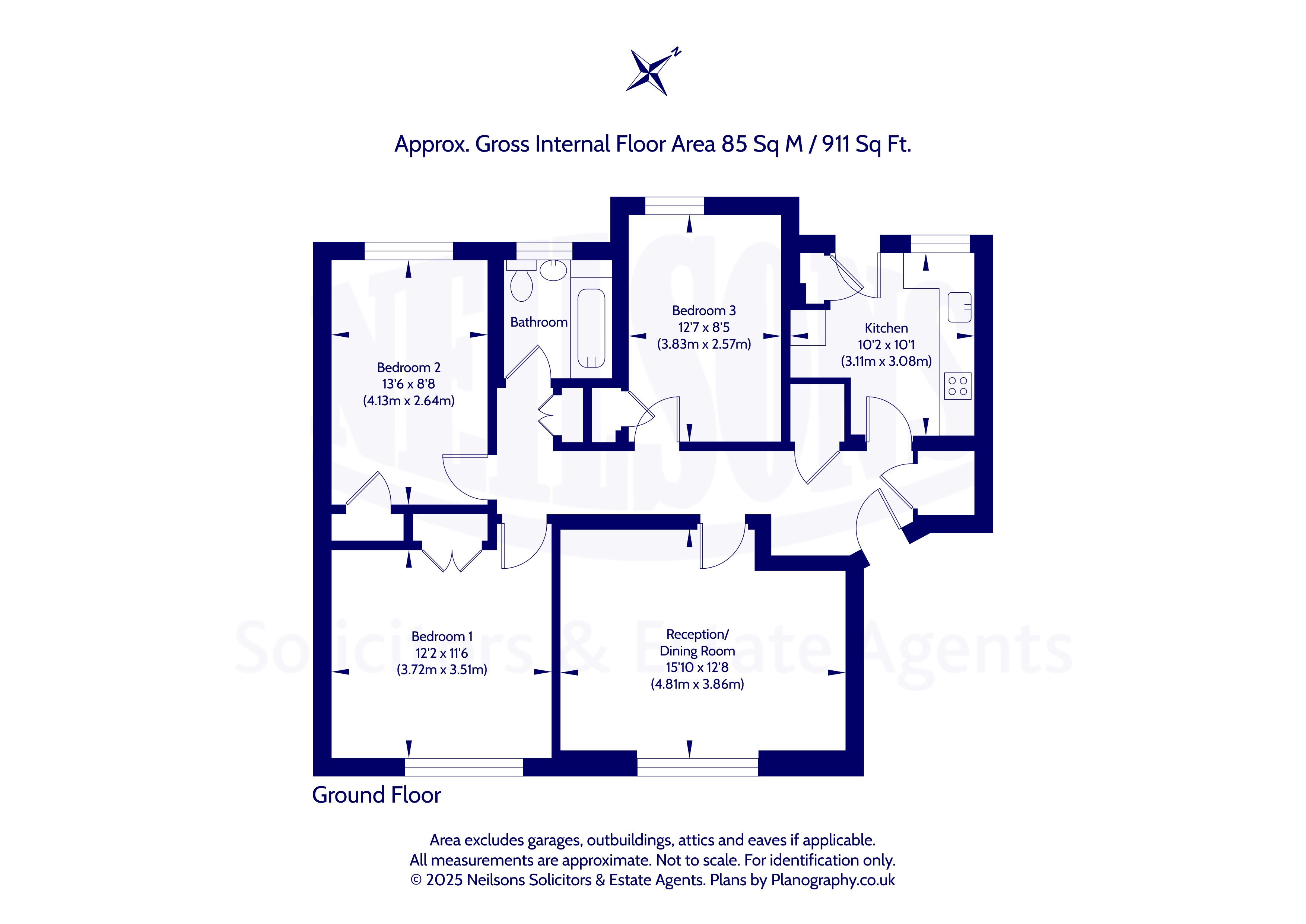 The bright and spacious accommodation comprises; welcoming hallway with useful storage provisions. There is a well-proportioned reception room located to the front with pleasant open outlook. The rear facing modern kitchen is fitted with ample wall and base units, built-in hob/oven/hood with further appliances included. A part-glazed UPVC door leads to the private rear garden. All three double bedrooms are generously sized and provide useful built-in storage. Lastly, the modern bathroom is fitted with a white three piece suite with Rainfall dual shower unit over bath. Further benefits include interlinked smoke and heat detectors, double glazing and a communal central heating system.