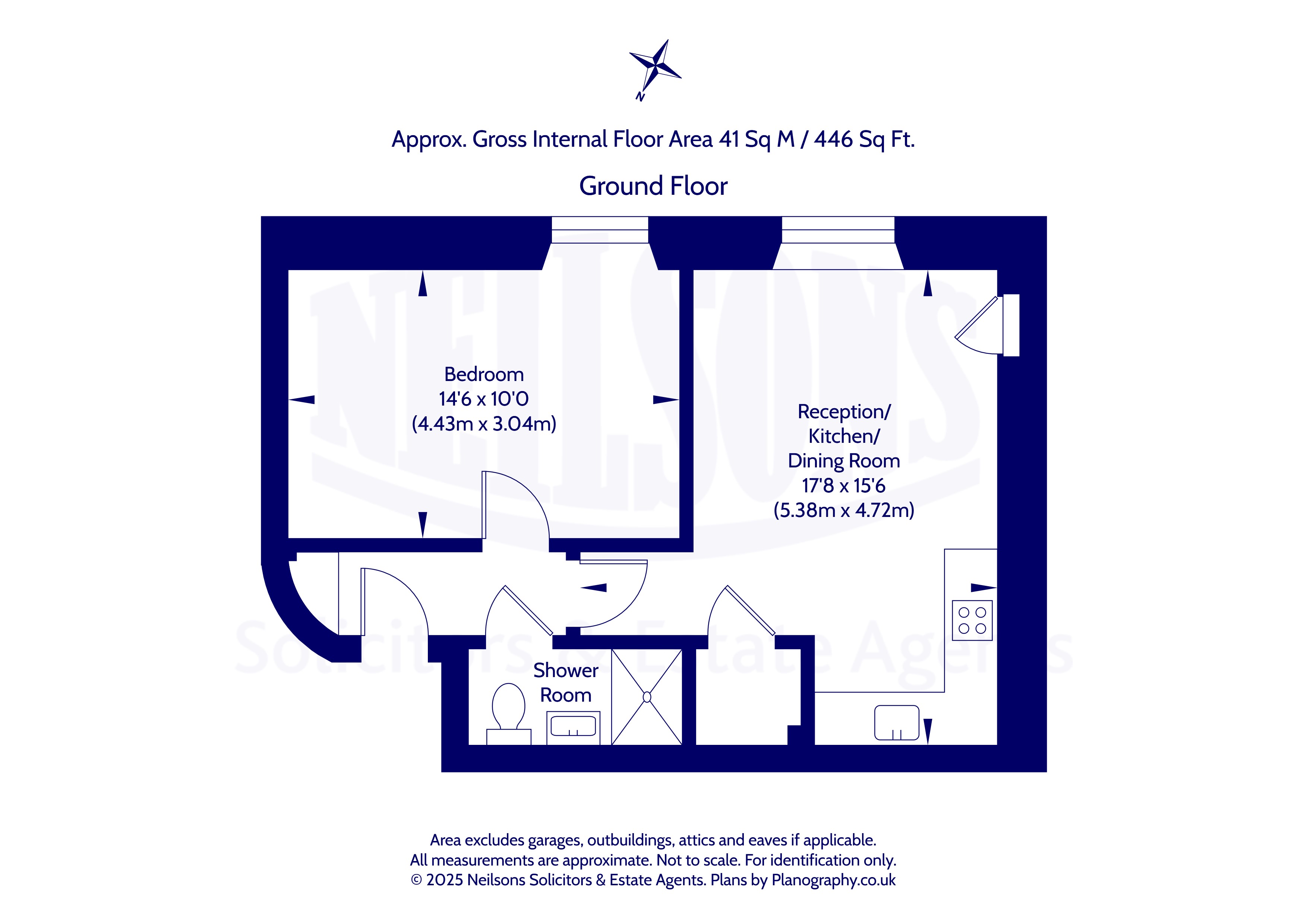 A welcoming hallway with a meter cupboard leads into a bright and open-plan lounge, kitchen, and dining area. This generous living space enjoys high ceilings and traditional proportions, enhanced by a press cupboard, under-window storage, and a tank cupboard offering additional space. The modern kitchen is fitted with a range of integrated and freestanding white goods, finished with partial tiling to the splash areas. The good-sized double bedroom enjoys a peaceful front aspect and offers ample room for various layouts and freestanding furniture. Completing the accommodation is a smart shower room with full paneling and a double cubicle.