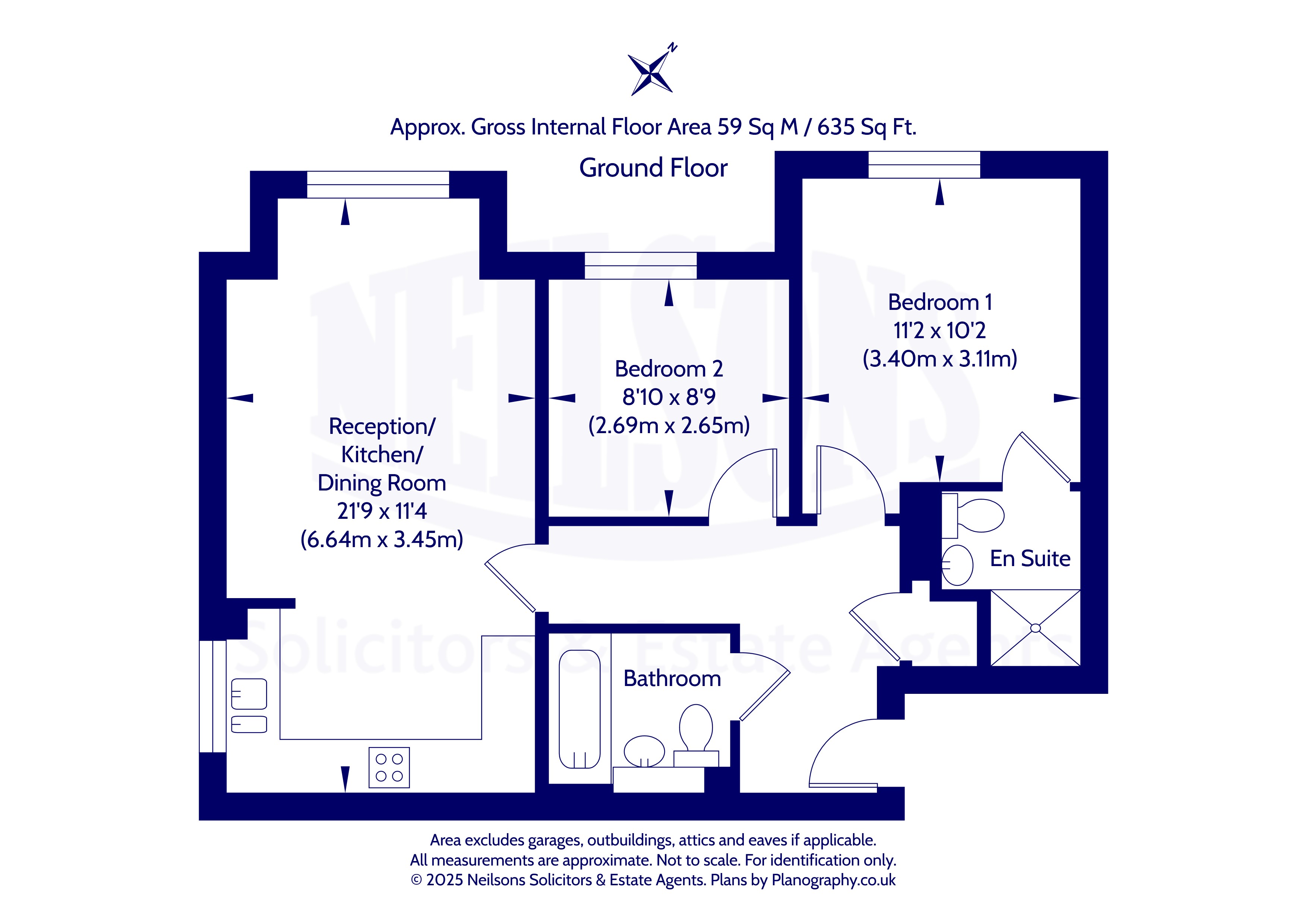 The thoughtfully designed interior begins with a welcoming hallway, complete with a secure entry phone system and a large storage cupboard. The bright and spacious living/dining room features ample space for relaxation and dining, with a pleasant outlook through a large window, creating an inviting atmosphere. This area flows seamlessly into a modern open-plan kitchen, fitted with a range of wall and base units, easy care worktops, contemporary tiled splashback, and a selection of integrated appliances, making it both functional and stylish. The principal double bedroom offers generous proportions and benefits from a modern en-suite shower room, complete with a white two-piece suite and fully tiled shower cubicle. A second well-sized bedroom provides flexibility for guests, family, or home working, while the family bathroom is finished to a high standard, featuring a white three-piece suite, electric shower over the bath, and full-height tiling.