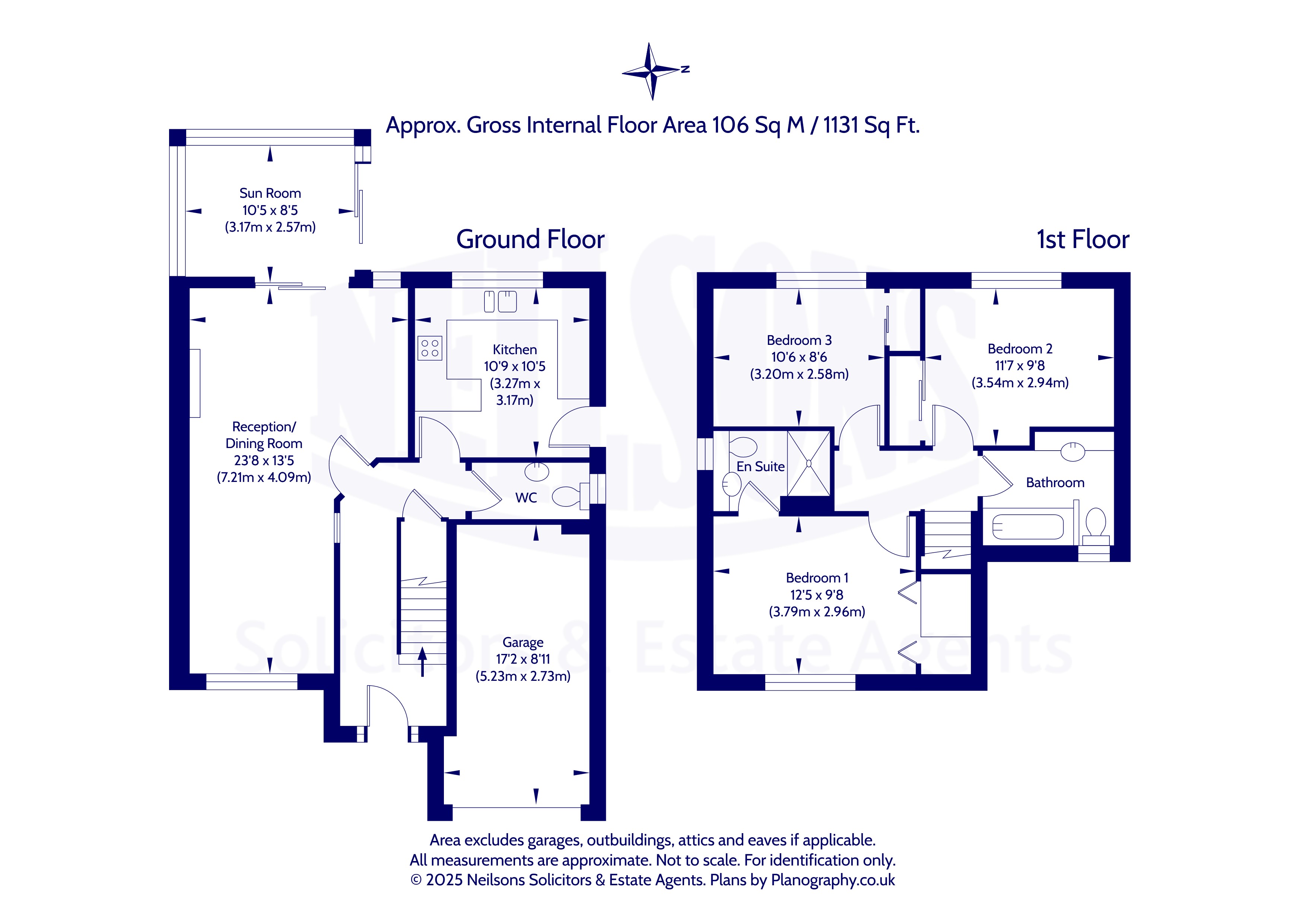 The property is entered via a welcoming hallway, which includes useful storage and a convenient WC. The dual-aspect reception room is bright and spacious, extending into a rear conservatory and offering ample space for both seating and dining furniture. The fitted kitchen is equipped with wooden wall and base units, integrated appliances including a fridge freezer, hob, and oven, creating a practical and well-appointed cooking area. The principal bedroom is a generous double to the front aspect, featuring built-in wardrobes and a modern en-suite shower room. Two further double bedrooms are located to the quiet rear of the property, overlooking the garden, and are fitted with mirror-fronted built-in wardrobes. The family bathroom is part-tiled and fitted with a three-piece suite and vanity storage, providing both style and functionality.