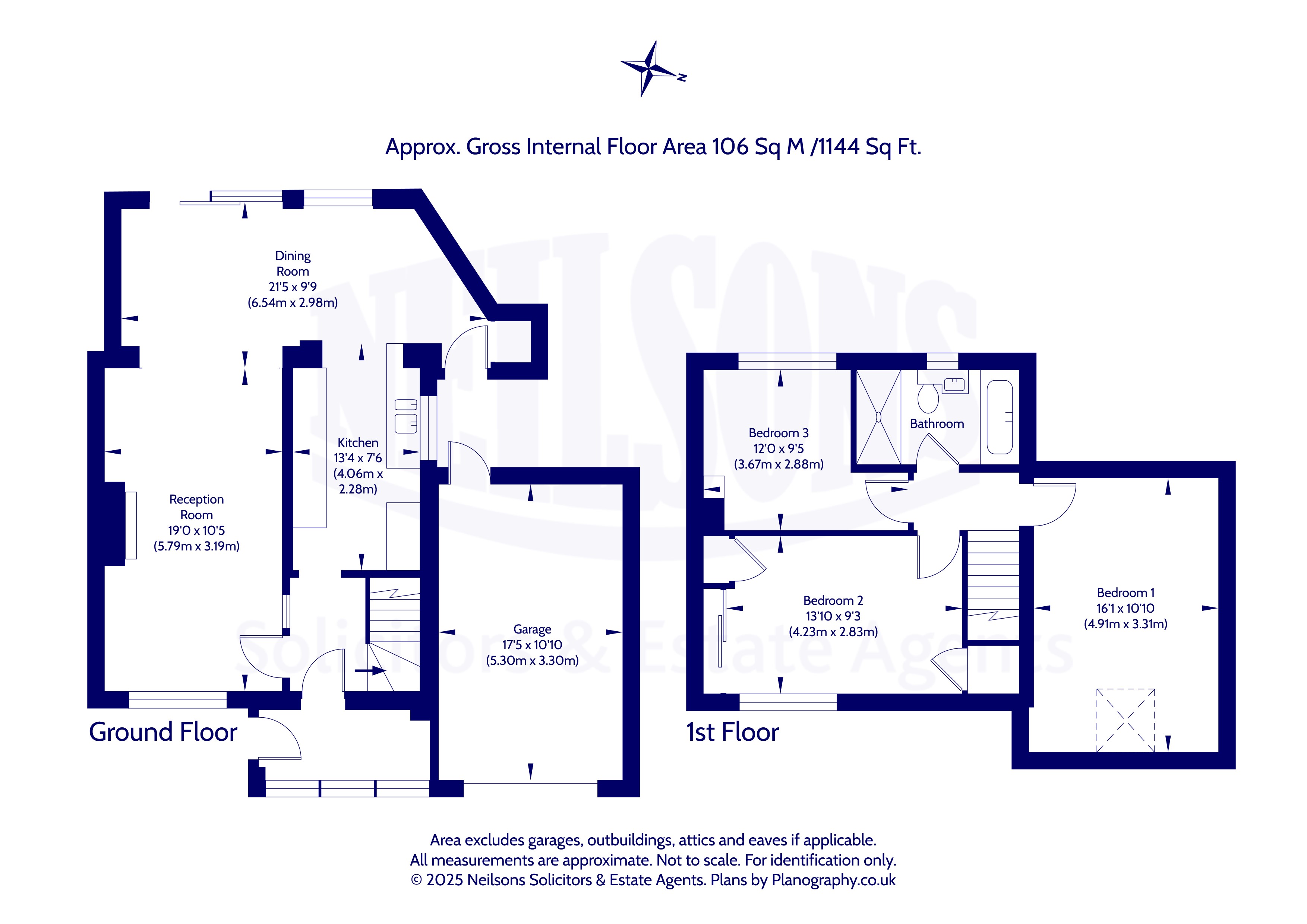 The accommodation opens with a welcoming entrance hallway that sets the tone for the well-presented interior. To the front, the bright and spacious reception room offers an ideal space for relaxation and family living. To the rear, a large dining room provides a natural flow through to the modern fitted kitchen, forming the heart of the home and offering an excellent setting for family meals and entertaining. The kitchen is well equipped with a range of wall and base units, ample worktop space, and room for appliances, providing both functionality and style. From the dining area, a door leads to the garage, which is fitted with power and lighting and provides secure parking or useful additional storage. Upstairs, the property features three well-proportioned double bedrooms, all benefiting from natural light and generous space for furnishings. The family bathroom is fitted with a contemporary three-piece white suite, including a separate walk-in shower, complemented by modern tiling and sleek finishes. Additional storage is provided throughout the home, including a fully floored attic with a Velux window and lighting, offering excellent potential for further storage.