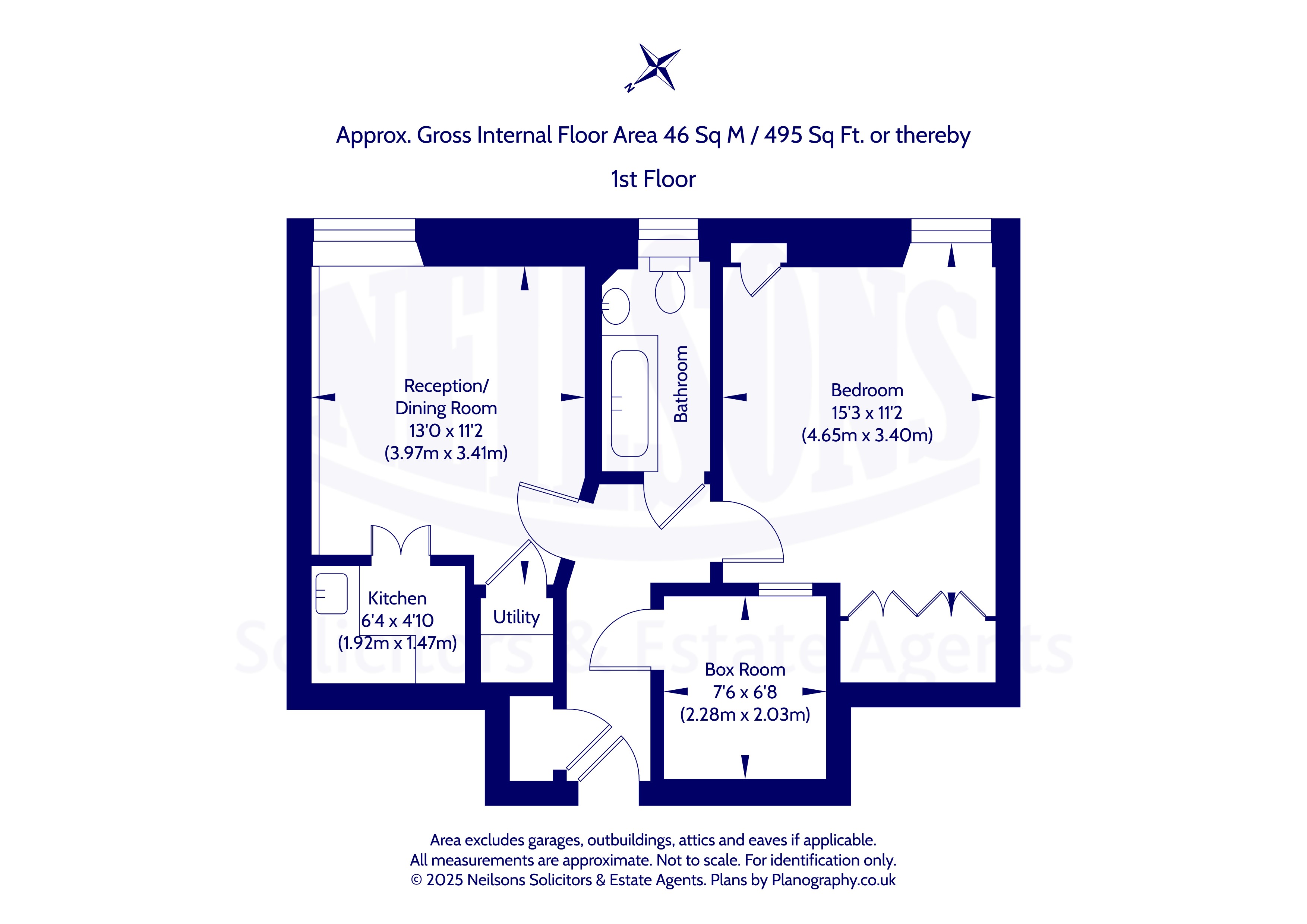 A welcoming hallway with shelved storage leads to the bright reception room, set to the front of the building. This comfortable living space features modern décor, fitted carpet, and a separate plumbed utility cupboard for added convenience. The adjoining kitchen provides a practical layout with fitted wall and base units, shelving for additional storage, and easy-care tiling to the splash areas. The generous double bedroom is quietly positioned and benefits from wooden flooring, ample built-in wardrobes, and excellent storage options. A spacious box room offers flexible use as a home office, study, or hobby space, enhancing the property’s versatility. Completing the accommodation, the bathroom features a white three-piece suite with a shower over the bath and tiling for easy maintenance.