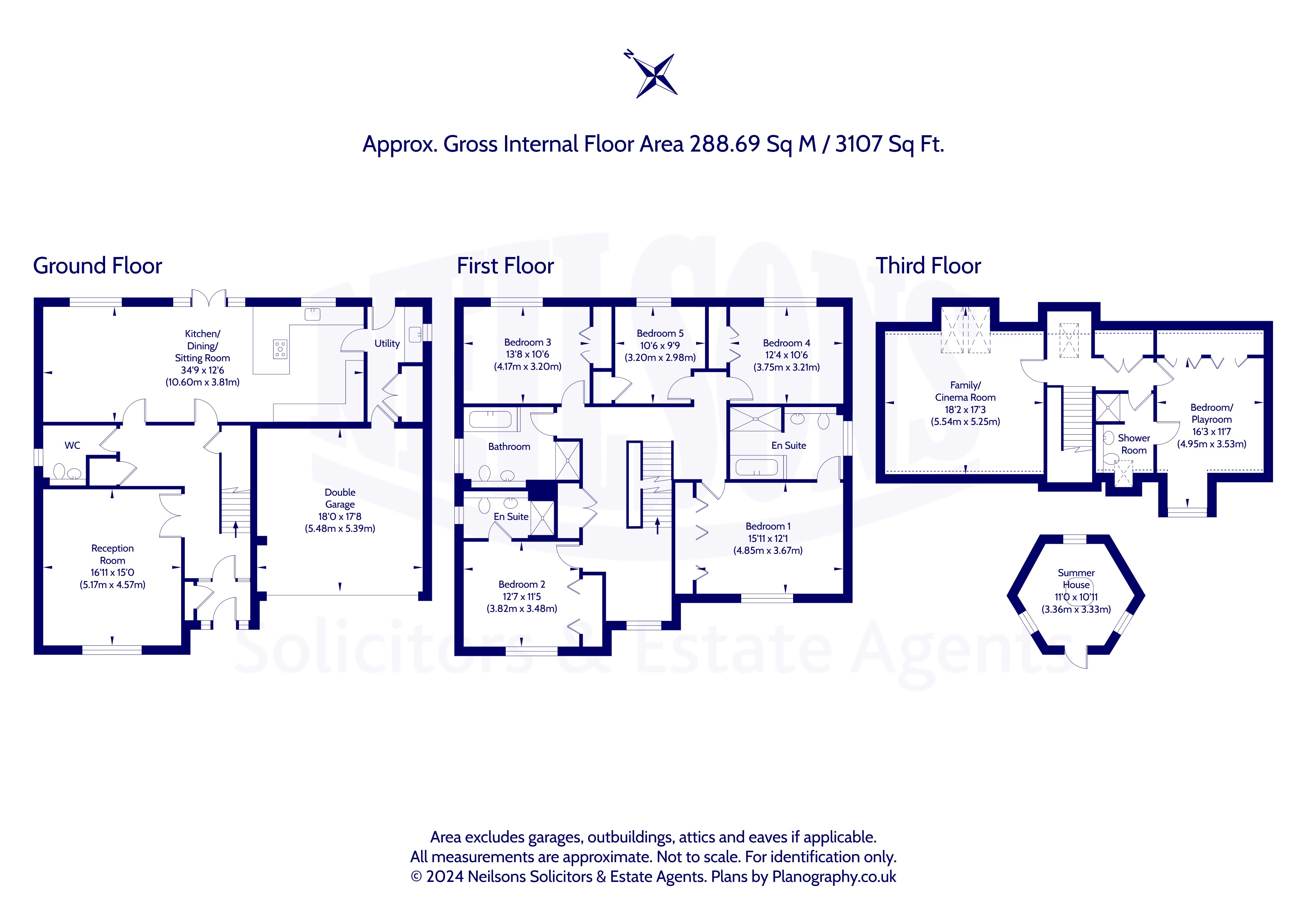 Finally on the top floor there is a versatile family/cinema room which would lend itself to a variety of uses, a sixth bedroom which is currently being used as a playroom, but which would work well as a home office, and shower room with wc, basin and separate tiled shower enclosure.