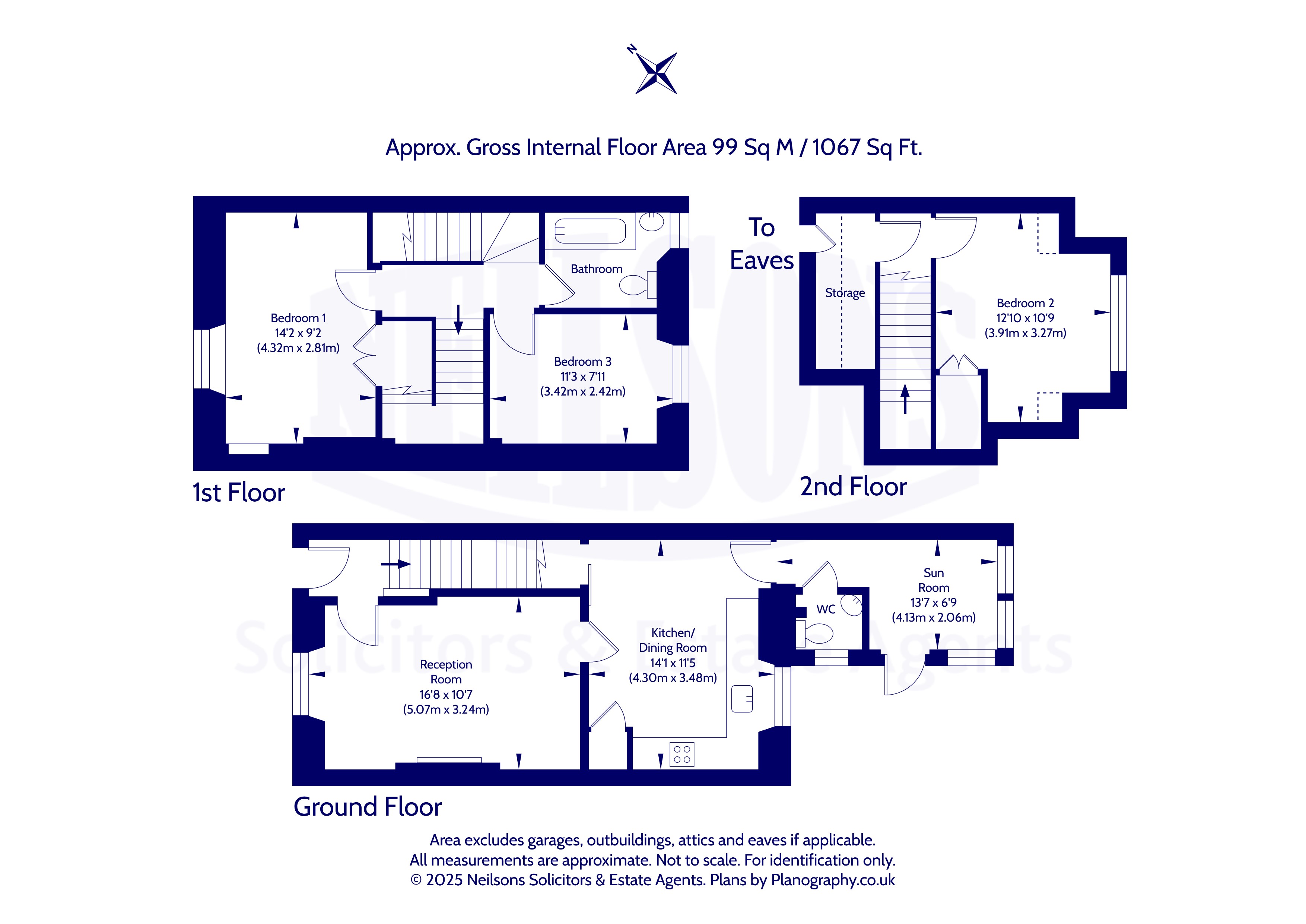 This deceptively spacious home enjoys a convenient position within the town, within walking distance of excellent provisions, reputable schooling and superb transport links. The welcoming accommodation, which has been beautifully finished and designed for modern living, comprises entrance hallway with carpeted staircase leading to the 1st floor landing. There is an elegant reception room centered around a feature fireplace incorporating the electric fire. The generous kitchen/dining room is located to the rear overlooking the garden and fitted with ample wall and base units with built-in Induction hob, electric oven and hood with integrated fridge freezer and washing machine included in the sale. There is a large understair cupboard providing excellent storage space. Located off the dining area is a pleasant sunroom with lovely setting over the sunny rear garden with door leading to the paved patio. A handy WC apartment is located off the sunroom, fitted with a two-piece suite. There is a good-sized principal bedroom located to the front of the 1st floor landing with feature press and large walk-in wardrobe. Double bedroom 3 is located to the rear together with the contemporary bathroom with white three piece suite, Rainfall shower and feature wood paneling. A further staircase leads to the double bedroom 2 with superb open views to the rear from the Dormer window. Fitted with built-in wardrobes and excellent eaves storage. A fantastic sized store room is adjacent to the bedroom providing excellent additional storage provisions. Further benefits include gas central heating with combi boiler and double glazed window units.