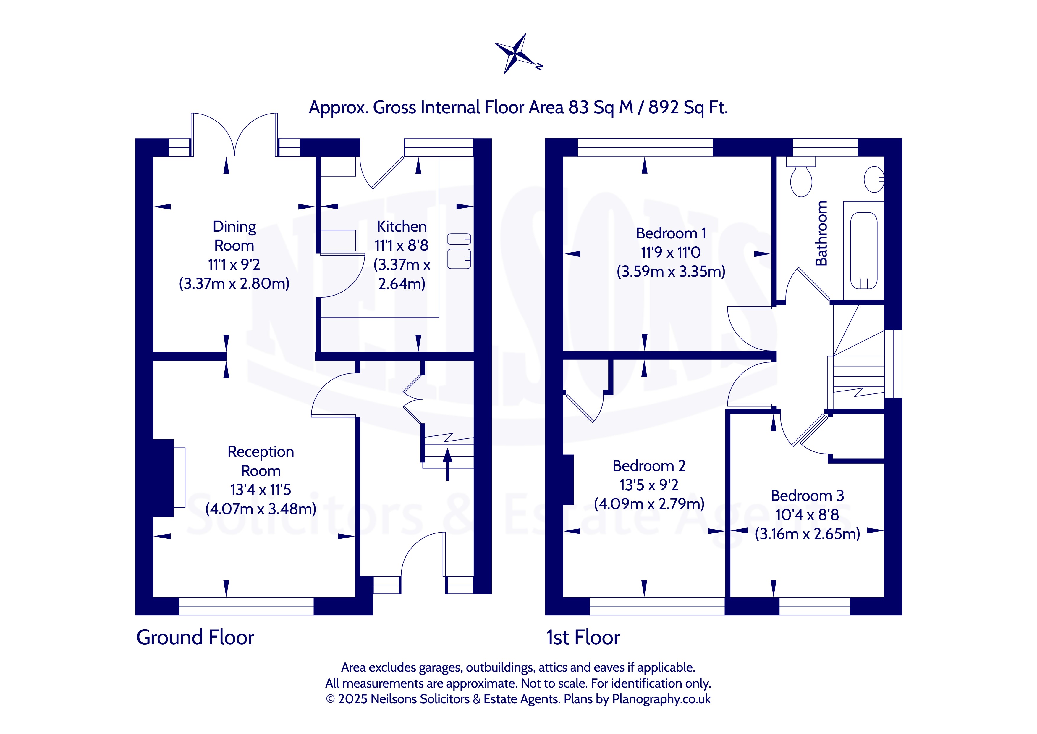 A welcoming entrance hallway gives access to the main ground floor accommodation and includes a useful understairs cupboard. The bright and spacious lounge enjoys a front-facing aspect, complemented by a stylish electric stove and shutter blinds for a modern finish. The lounge flows seamlessly into the dining room, where French doors open directly onto the rear garden – perfect for family meals and entertaining. The modern kitchen is fitted with a range of integrated and freestanding white goods, along with partial tiling in splash areas and under-unit lighting, creating a practical and contemporary workspace. Upstairs, the first-floor landing provides access to the partially floored attic via a Ramsay ladder. The principal bedroom is a generous rear-facing double, while the second bedroom is another well-sized double with a front aspect. Both rooms offer flexibility for freestanding furniture and varied layouts. The third bedroom is a spacious single with a handy storage cupboard, ideal as a child’s room or home study. The bathroom is finished with partial tiling and features a rain shower over the bath along with a heated towel rail.