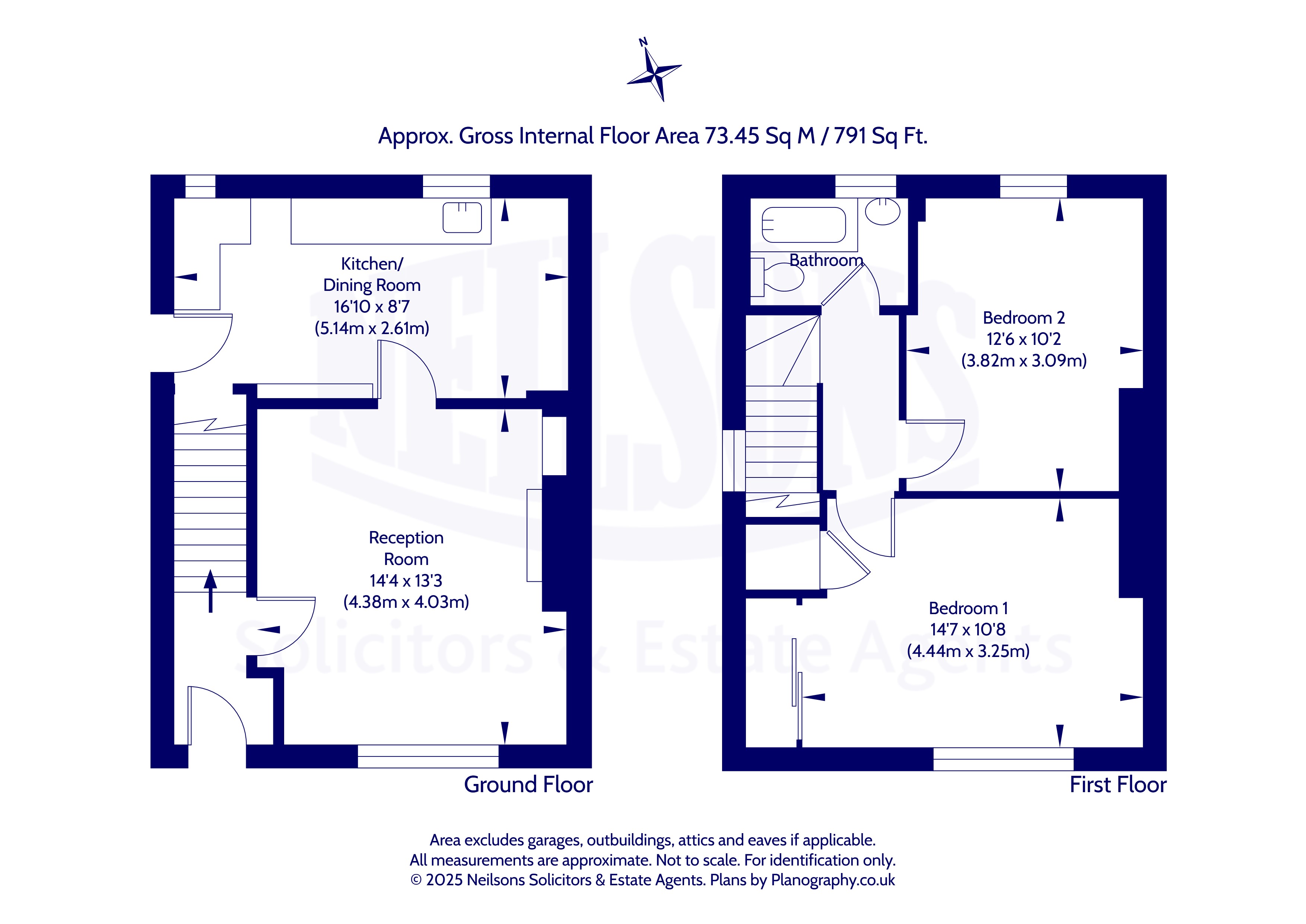 The accommodation begins with a welcoming hallway leading to a bright front-facing reception room. This comfortable living space features a fireplace, useful shelved storage, and ample room for both relaxation and entertaining. To the rear, a generous dining kitchen is fitted with an excellent range of wall and base units and offers plenty of space for dining. Direct access to the rear garden enhances the appeal for those who enjoy indoor-outdoor living or al-fresco dining during the warmer months. Upstairs, the principal double bedroom is positioned to the front and enjoys open views towards the Pentland Hills. It benefits from mirror-fronted built-in wardrobes and additional storage. A second well-proportioned double bedroom is set to the rear, finished with modern laminate flooring. The bathroom is stylishly appointed with contemporary tiling, a white three-piece suite, and a Mira electric shower over the bath.