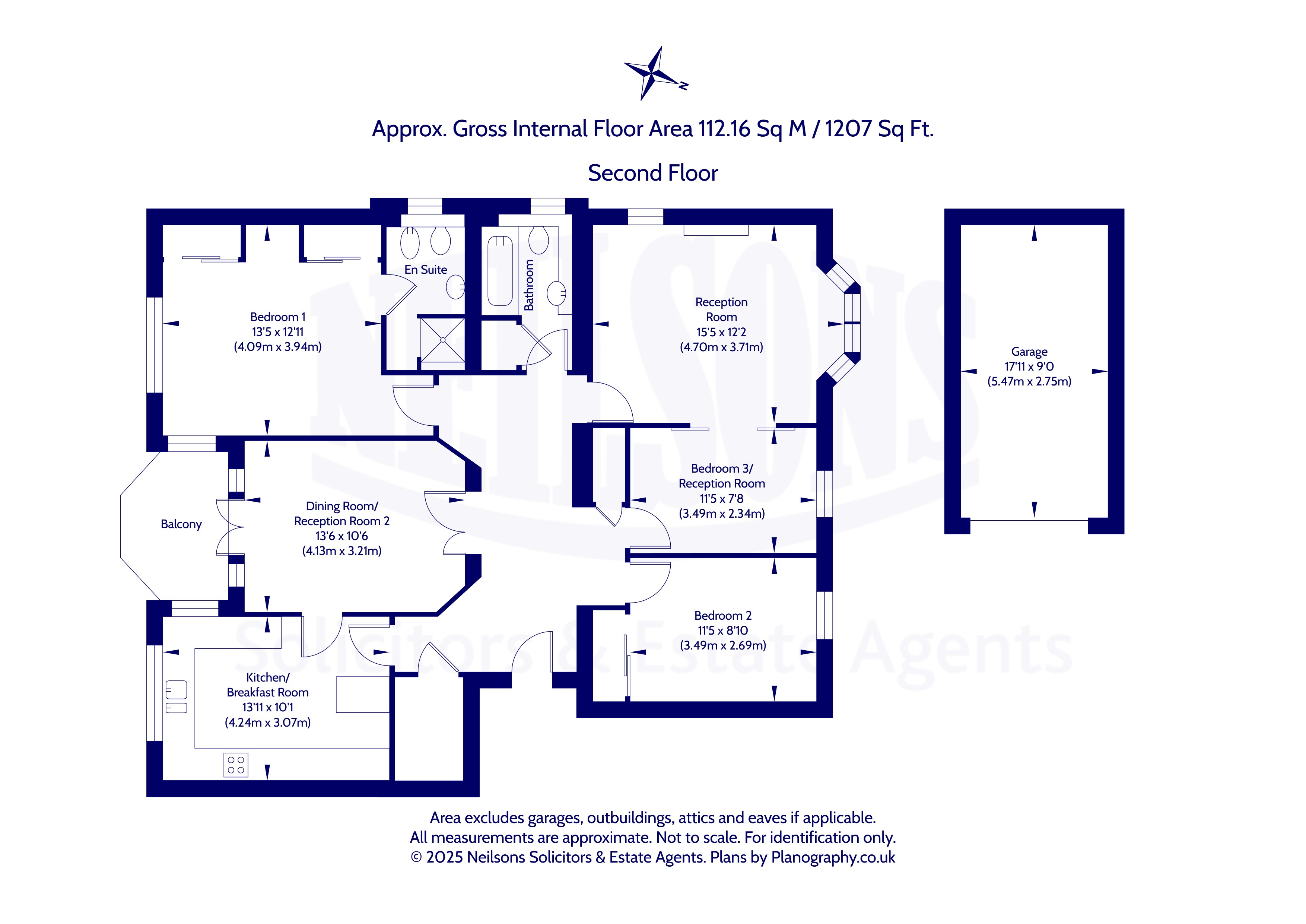 Entered via secure video entry, the property is quietly positioned on the second floor with a wide and welcoming hallway giving access to all rooms. The elegant dual-aspect reception room has a bay window and lovely outlook. A second reception room or formal dining room opens to a private covered south-facing balcony. The kitchen/breakfast room is fitted with classic shaker-style units and integrated appliances including oven, hob, hood, microwave, fridge freezer, dishwasher and washing machine. The principal bedroom is a generous double with built-in wardrobes and en-suite shower room. A second double bedroom also benefits from built-in wardrobes and views to the golf course. The third bedroom, accessed from the hallway and via sliding doors from the reception room, offers excellent versatility as a bedroom, study or snug. The spacious family bathroom has a white three-piece suite and over-bath shower. There is superb storage including a walk-in cupboard, large shelved cupboard and access to a substantial floored attic. Gas central heating and full double glazing are installed.