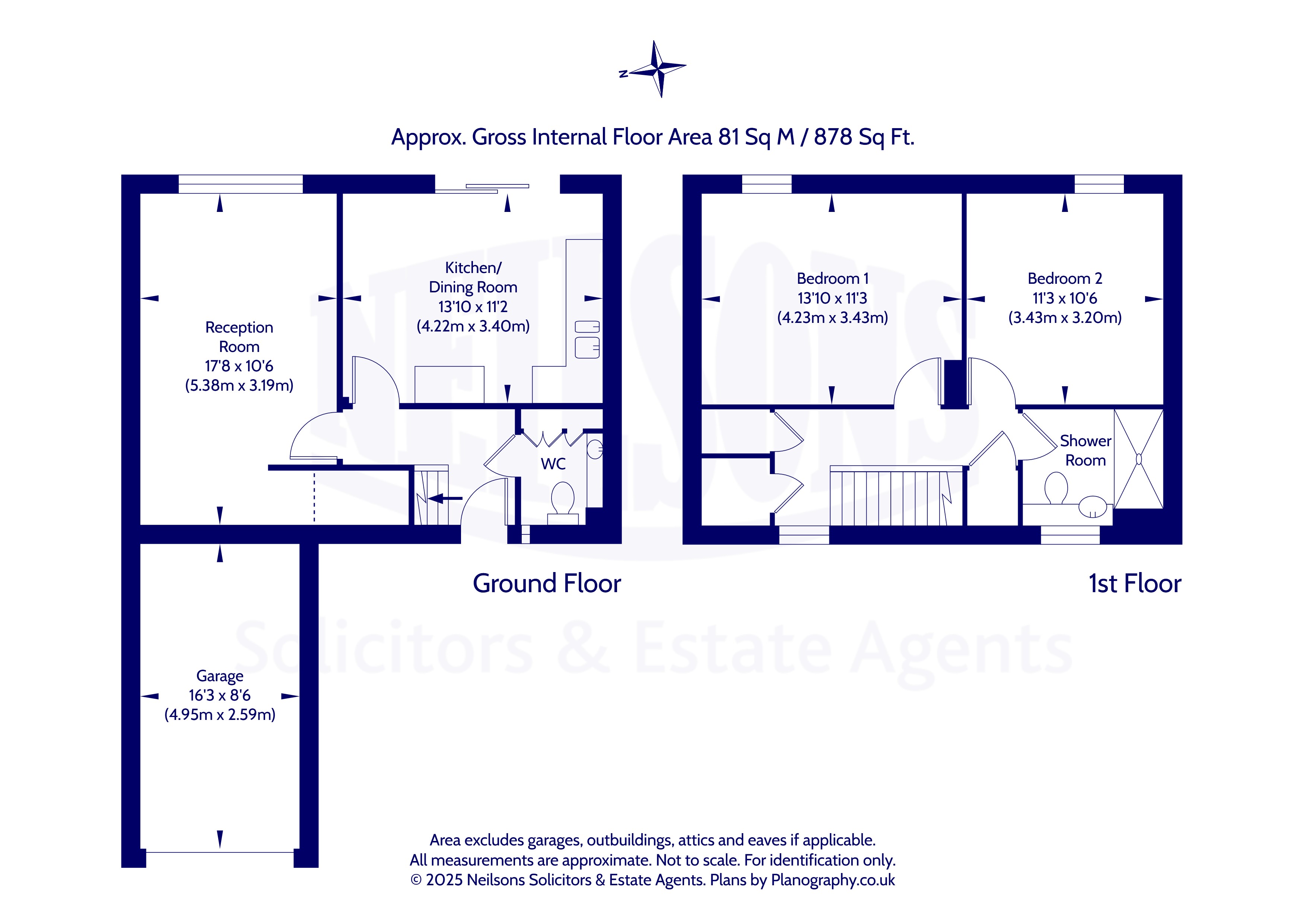 A welcoming entrance hallway gives access to a convenient ground floor WC, a useful storage cupboard, and a bright, airy lounge enjoying a pleasant outlook over the rear garden. The spacious kitchen/diner is fitted with a range of modern base and wall-mounted units, coordinated worktops, and partial tiling in splash areas, with sliding doors providing direct access to the rear garden – perfect for everyday family living and entertaining. Upstairs, the landing offers fantastic storage provisions as well as attic access, whilst the two generous double bedrooms offer ample space for freestanding furniture and flexible layouts. Completing the internal layout is the contemporary, partially tiled shower room boasting a walk-in rainfall shower, tiled flooring, and heated towel rail.