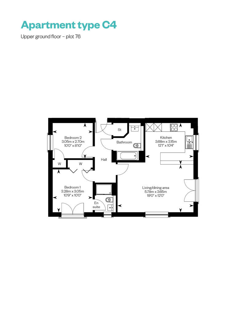 Three-zone living makes this the perfect ground floor apartment for young families, couples or downsizers. The living/dining area enjoys generous proportions, with double glass doors allowing natural light to flood in. In warmer months, invite the outside in or dine out in style on your private balcony. The kitchen with the latest Siemens integrated appliances and wraparound peninsula allows just enough privacy while ensuring you’re still part of any family activity or special occasion. Both bedrooms include fitted wardrobes, providing elegant lines within this personal space. The larger of the two offers the ultimate pampering escape with an en-suite and Juliet balcony opening to the world outside. Wander past the family bathroom and notice the Laufen sanitaryware. Imagine a luxurious evening lying back and relaxing in style. This stylish apartment also boasts excellent storage throughout for extra practicality and secure entry.